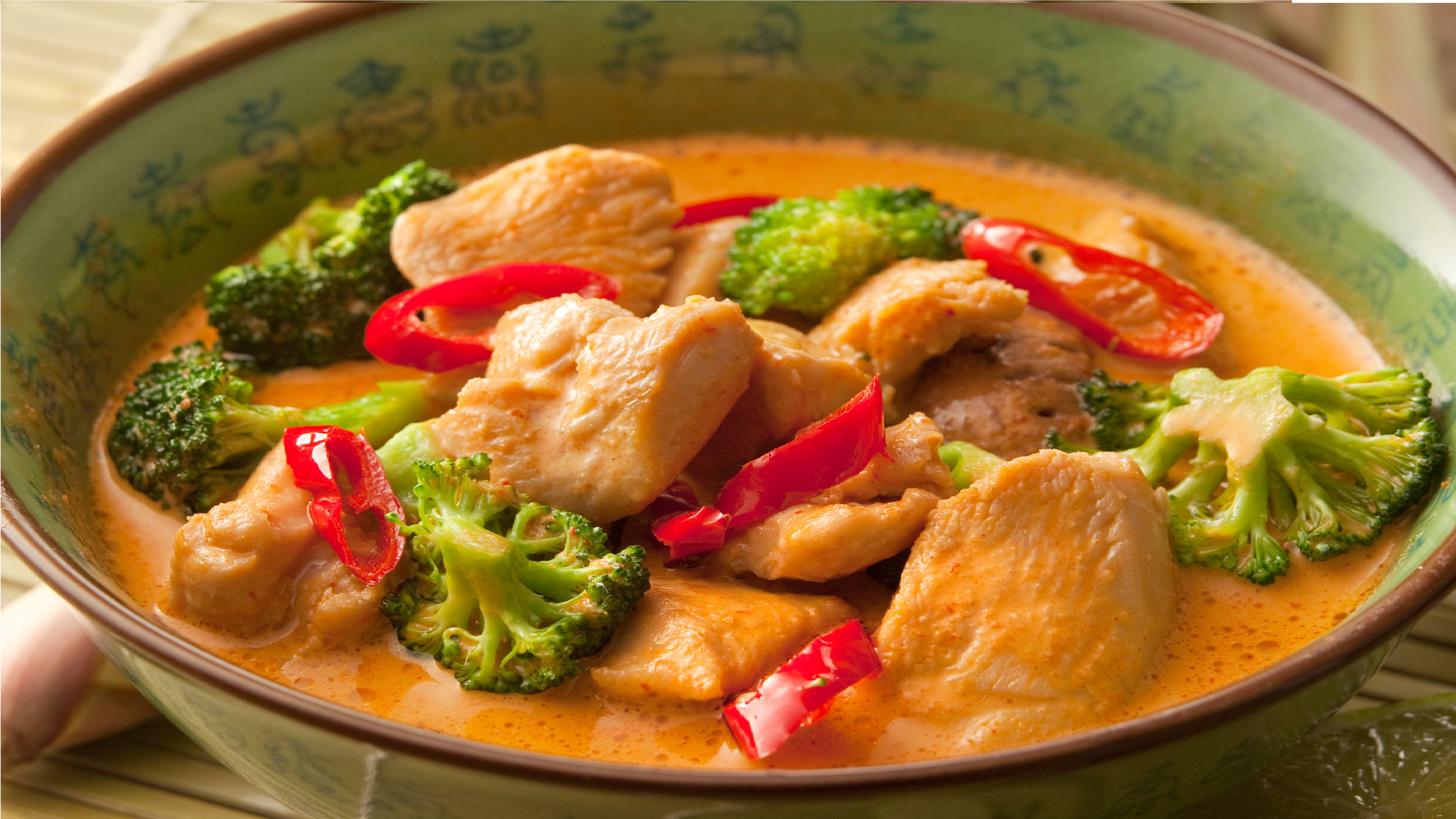 Anschließend die Kokosmilch sowie die Erdnüsse hinzufügen und mit Currypulver, Erdnussbutter und Sojasoße verfeinern. Zu guter Letzt die Nudeln in die Pfanne geben und gut vermischen.
