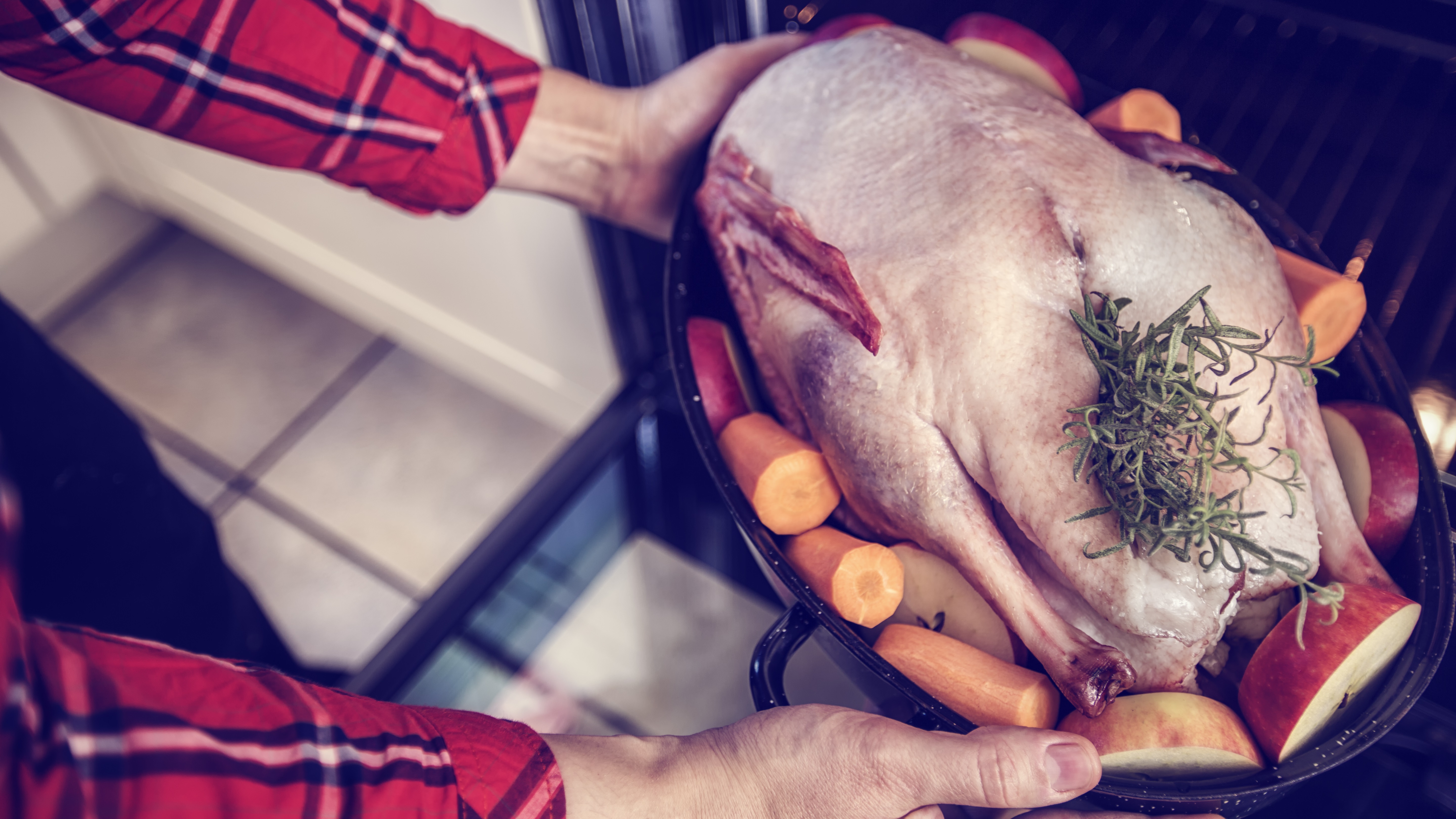 Bevor die Gans in den Ofen kommt, wird überschüssiges Fett entfernt und restliches Gewebe und Blut aus der Gans gewaschen. Für eine gefüllte Gans die Öffnung wie einen Schnürschuh verschließen. Die Keulen immer mit Küchengarn zusammenbinden, damit die Gans auch nach dem Braten noch schön in Form ist. Eine gefüllte Gans ist im Schnitt nach 3 Stunden bei 175-200 Grad (Gas 2-3) durchgebraten. Die Gänsehaut wird schön knusprig und goldgelb, wenn die Gans etwa alle 20 Minuten mit etwas Gänsefett, das während des Bratens austritt, beschöpft wird.
